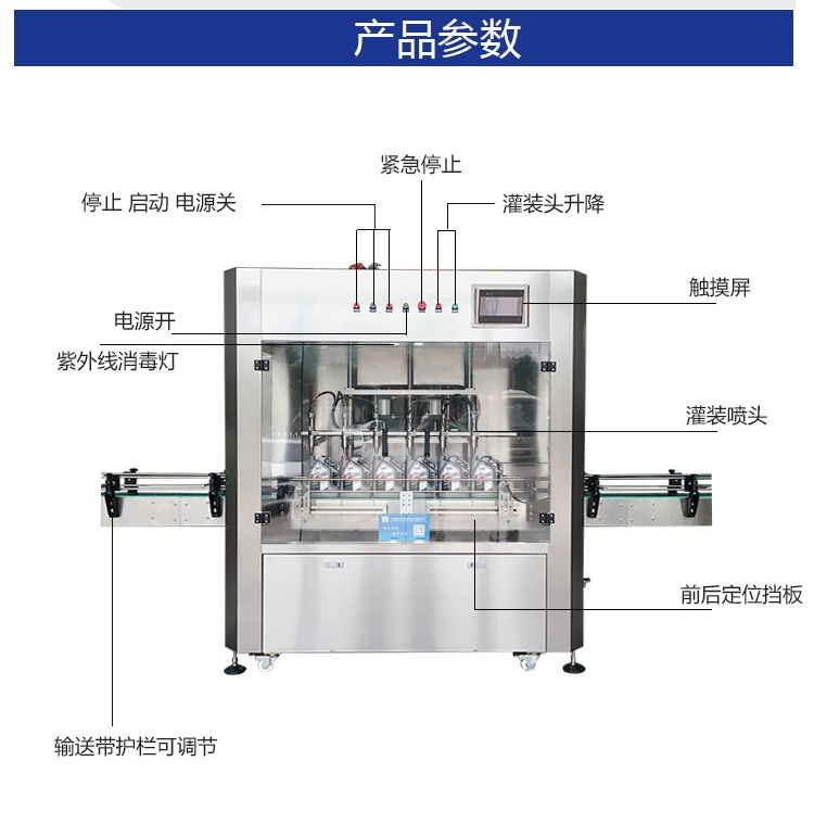 該六頭柱塞式全自動潤滑油灌裝機獨特的灌裝頭設計及真空回吸系統(tǒng),確保灌裝過程無殘油滴漏,快慢雙速灌裝,灌裝速度可調,杜絕溢瓶現象。