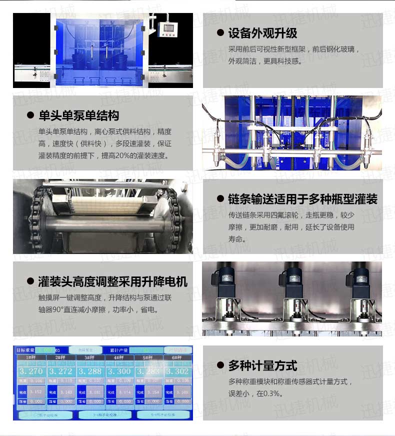 機(jī)油灌裝機(jī)適用于對4kg-25kg汽車用品類產(chǎn)品:潤滑油、防凍液、車用尿素等液體灌裝。自動(dòng)完成計(jì)數(shù)進(jìn)瓶、計(jì)重量灌裝、輸送出瓶等一系列操作。 特別適用于潤滑油、水劑、食用油的定量灌裝,是食品,醫(yī)藥,化妝品以及精細(xì)化工等行業(yè)的理想灌裝機(jī)。本機(jī)采用可編程控制器(PLC)、高速工控組態(tài)軟件進(jìn)行實(shí)時(shí)監(jiān)控的控制,使用調(diào)節(jié)方便。整機(jī)按GMP標(biāo)準(zhǔn)要求制作,各管路連接采用快裝方式,拆卸清洗方便,與物料接觸部位及外露部位均采用不銹鋼制造。整機(jī)安全、環(huán)保、安全、美觀、能適應(yīng)各種不同環(huán)境工作。