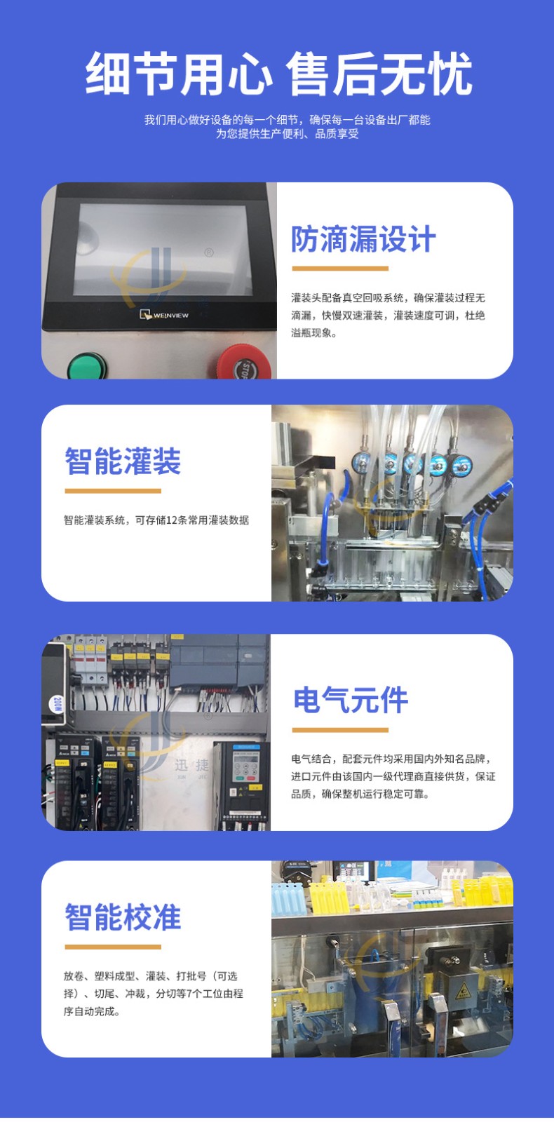 易折試劑管成型灌裝機(jī)廣泛使用于護(hù)理液、口服液、洗眼液、營(yíng)養(yǎng)液、香水、食用油、潤(rùn)滑油、化工及特殊行業(yè)的液體灌裝。