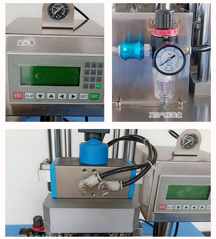 3、半自動蜂蜜真空旋蓋機(jī)通過更換少量部件,能適用于形狀、尺寸不同瓶子的真空旋蓋;