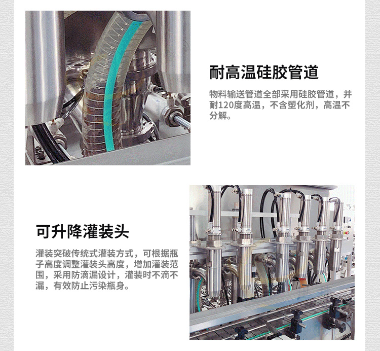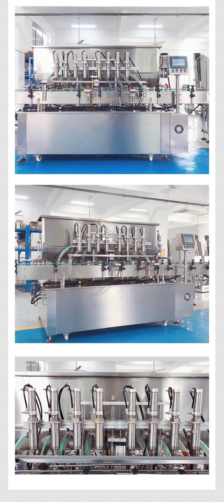 全自動八頭醬料灌裝機采用活塞式灌裝原理,適用于調(diào)味品中帶顆粒并且濃度較大的辣椒醬、豆瓣醬、花生醬、香菇醬、果醬