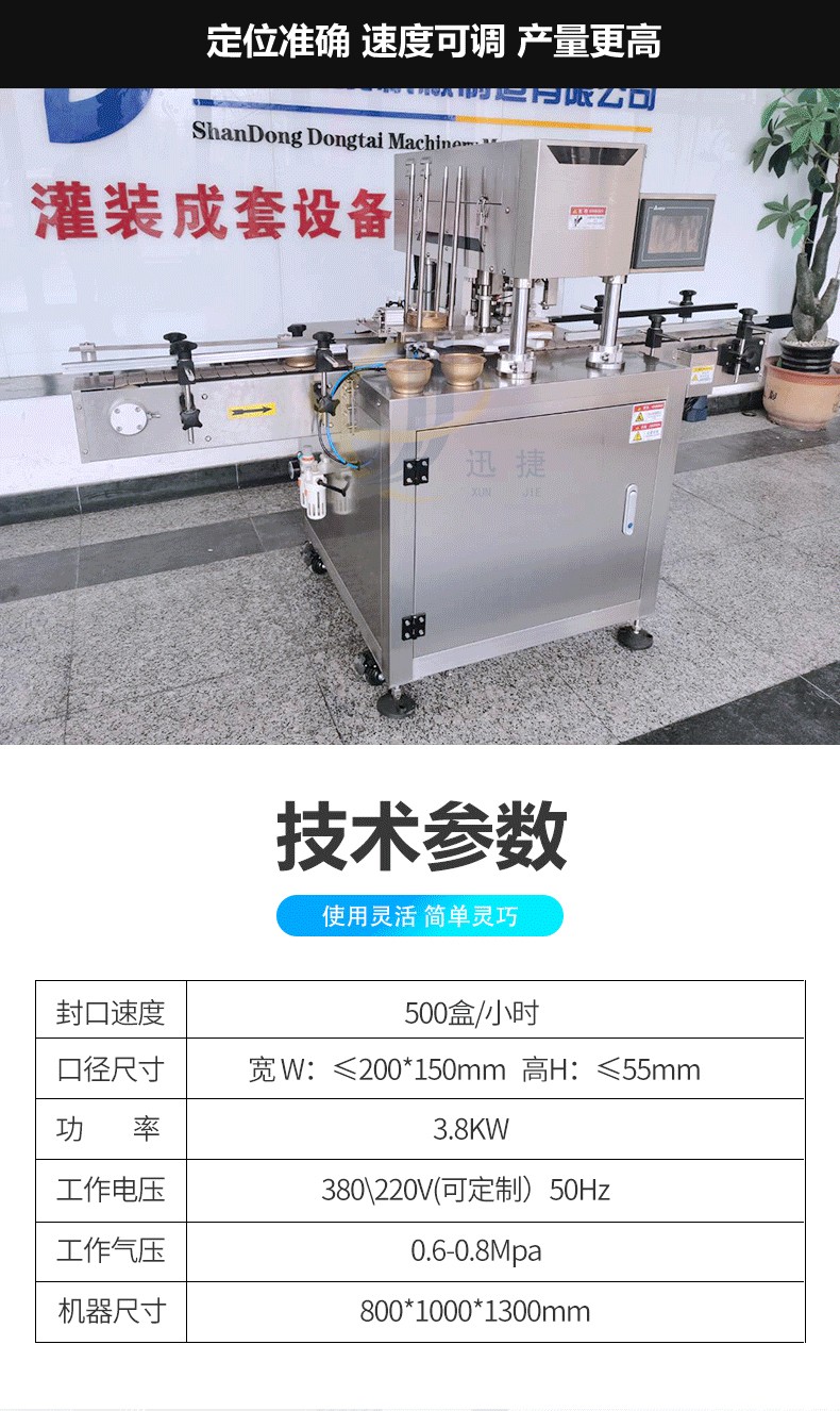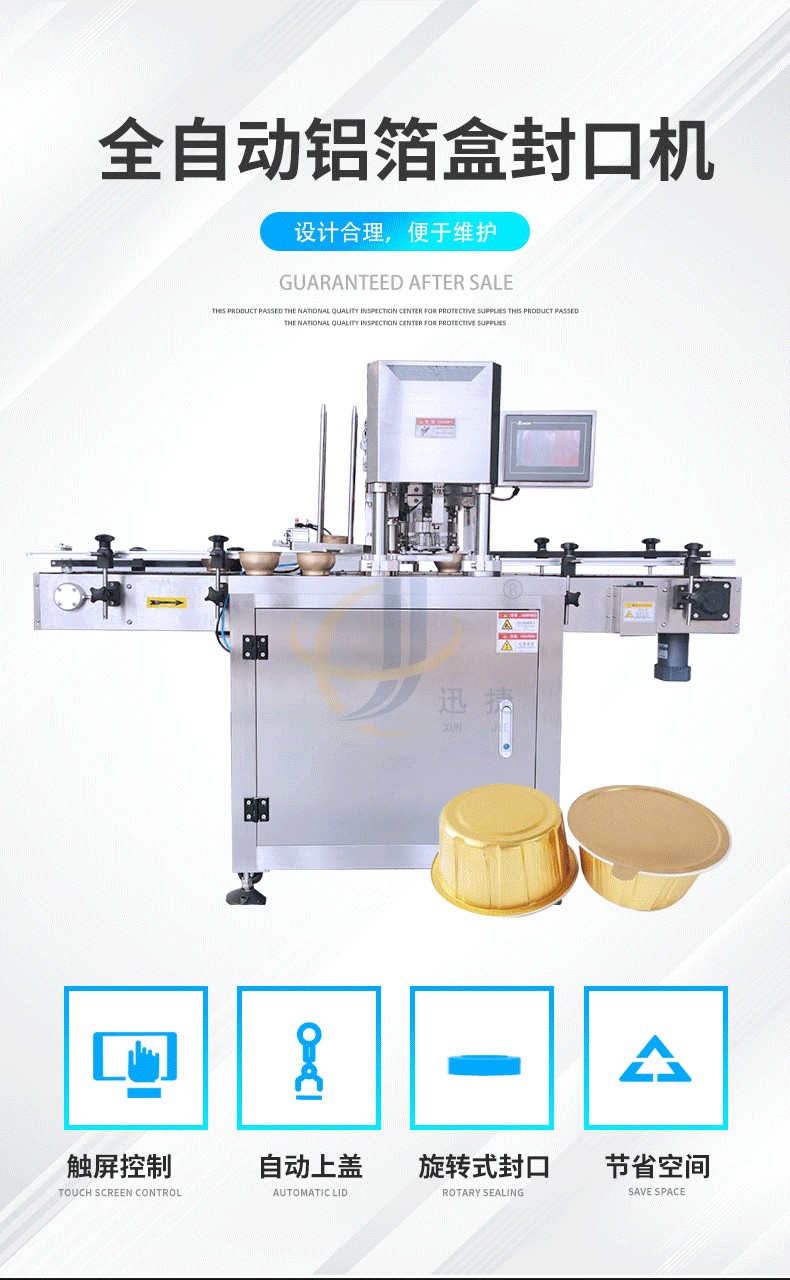 全自動鋁箔盒封口機用途:用于咖喱醬、調(diào)料品、火鍋料、果醬、辣椒醬、醬油醋、番茄醬等杯盒的自動灌裝與封口。