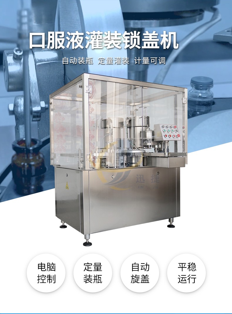 全自動口服液灌裝鎖蓋機適用于多種規(guī)格的口服液糖漿瓶灌裝軋蓋。自動完成進瓶、理瓶、灌裝、宋改、軋蓋出瓶等多種工藝。