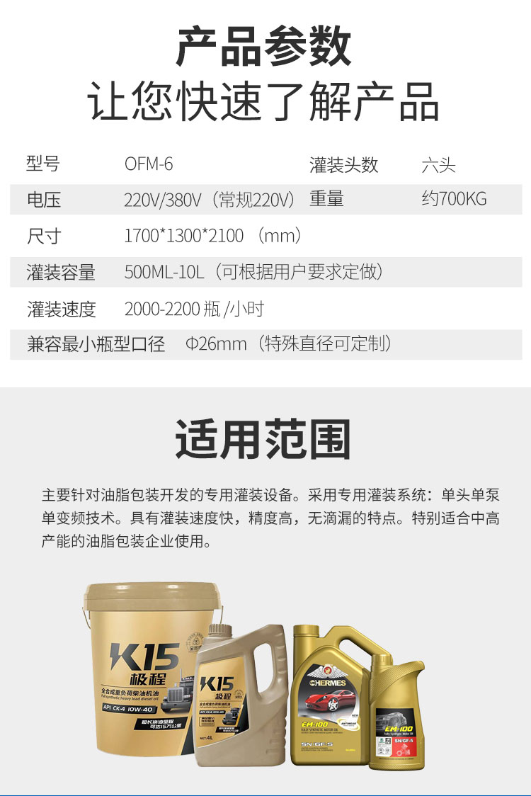 全自動六頭稱重潤滑油灌裝機主要針對油脂包裝開發(fā)的專用灌裝設(shè)備。采用專用灌裝系統(tǒng):單頭單泵單變頻技術(shù)。具有灌裝速度快
