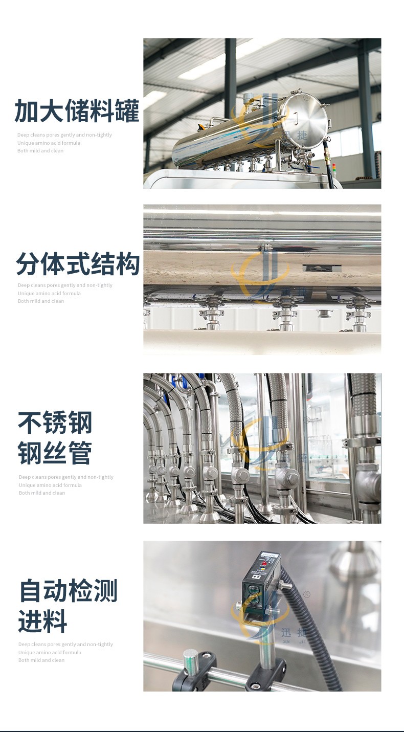 全自動液體灌裝機用于灌裝飲料、果汁,牛奶,酒精,消毒液,口服液,洗衣液等液體,廣泛應用于食品,化工,醫(yī)療等行業(yè),灌裝精密,功能強,實用性高的灌裝機械。