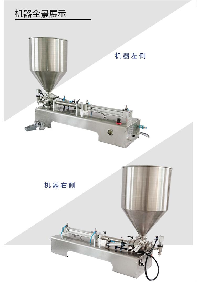 氣動(dòng)膏體灌裝機(jī)主要適用于化工、食品、日化、藥品、農(nóng)藥、潤滑油等行業(yè)的液體膏體等物質(zhì)的定量灌裝,該灌裝機(jī)缸體、機(jī)殼、料斗均由不銹鋼材質(zhì)制成,活塞有四氟乙烯材料制成,氣動(dòng)部分均采用氣動(dòng)元件,符合GMP[要求,氣動(dòng)膏體灌裝機(jī)的灌裝量和灌裝速度可任意調(diào)節(jié),擁有腳踏開關(guān)和自動(dòng)灌裝功能,精度高,結(jié)構(gòu)簡潔,操作便利。